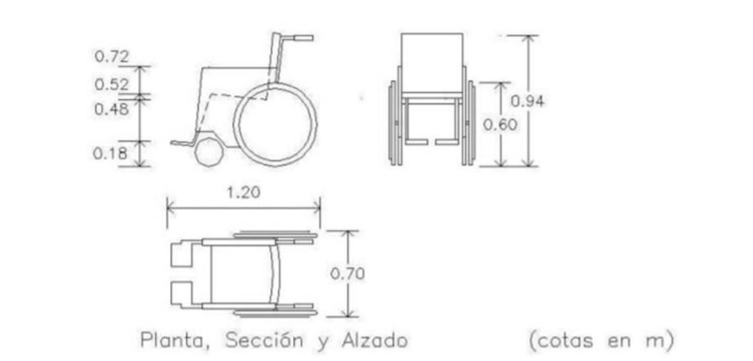 Por todo ello, a partir de ahora, utilizaremos la medida de la silla de ruedas como base para diseñar nuestros espacios y elementos, basándonos en las siguientes medidas: 1,20 cm. de largo x 70 cm. de ancho. Así mismo, tendremos en cuenta, a la hora de diseñar objetos el concepto de ergonomía. Debemos ponernos en la piel de los usuarios, es decir pensar siempre que podemos caminar con dificultad o ver, oír y hablar con limitaciones.